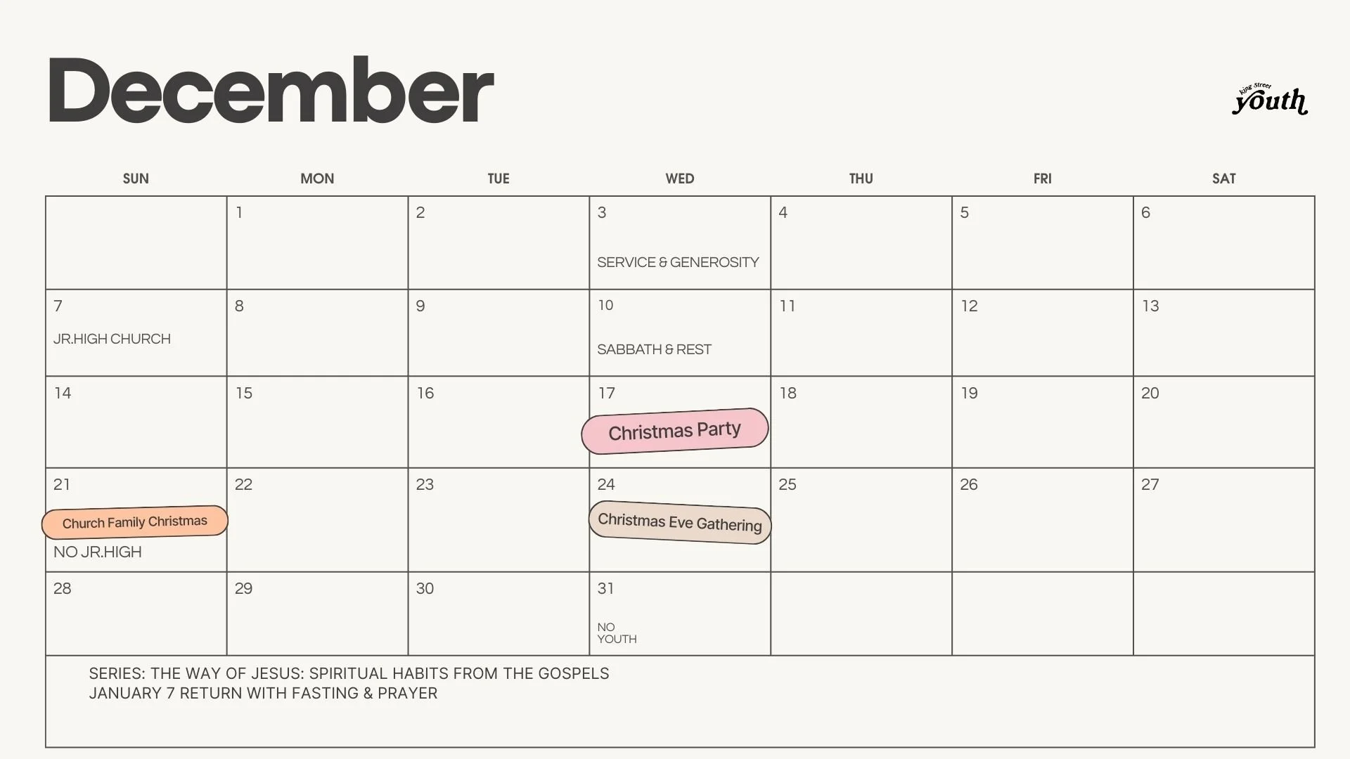 During January and February, students will be part of a teaching series called “What the Bible Says About ___.” Each week, we’ll explore real-life topics students face like identity, mental health, sin, relationships, social media, and where to turn for help, through the truth of Scripture. Our heart is to create a safe, grace-filled space where students can learn what the Bible actually says and how God speaks into every part of their lives.