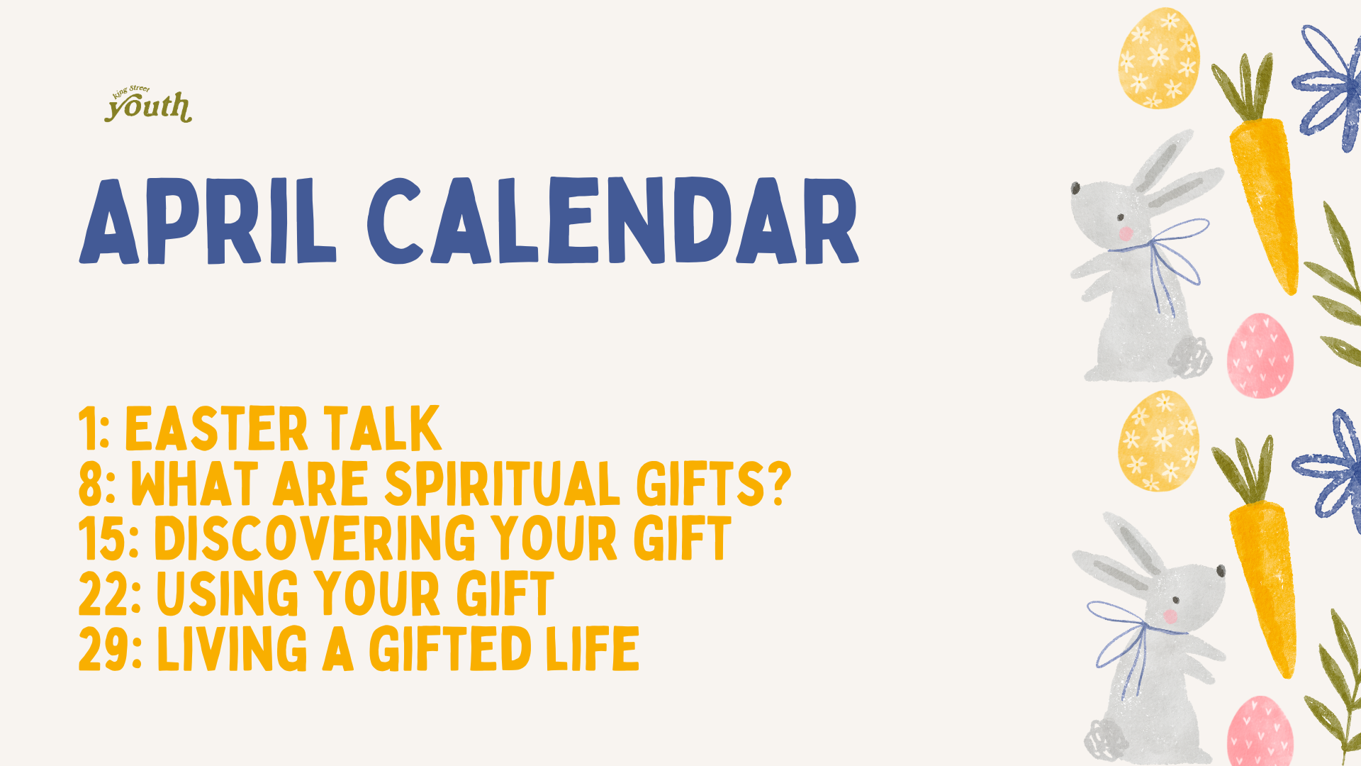 For the month of April, our students will explore what it means to be “gifted” by God - not in the way the world often defines it, but through the unique spiritual gifts given to every follower of Jesus. Together, we’ll unpack what spiritual gifts are, how to begin discovering them, and how to use them to serve others and make a difference.